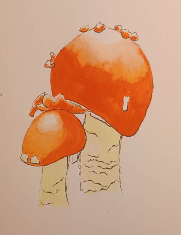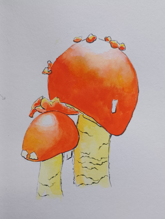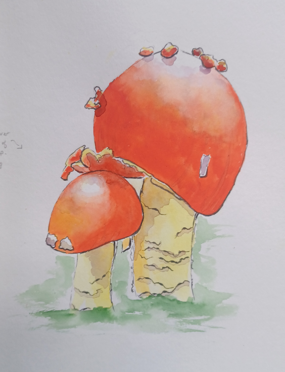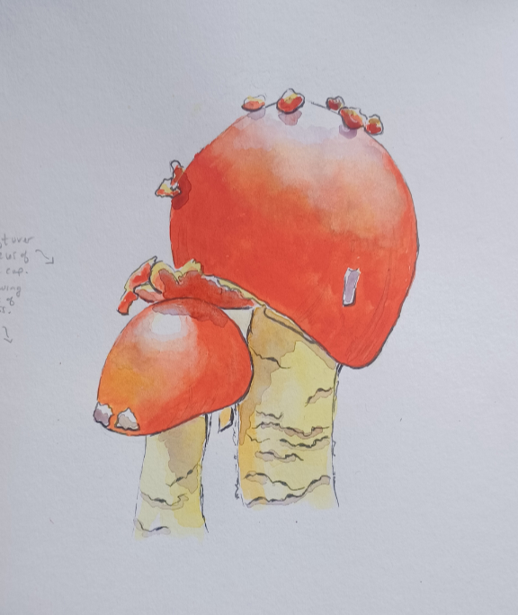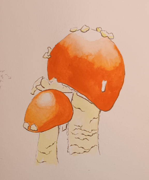 Amanita Caesar Mushroom Watercolor Step-by-Step